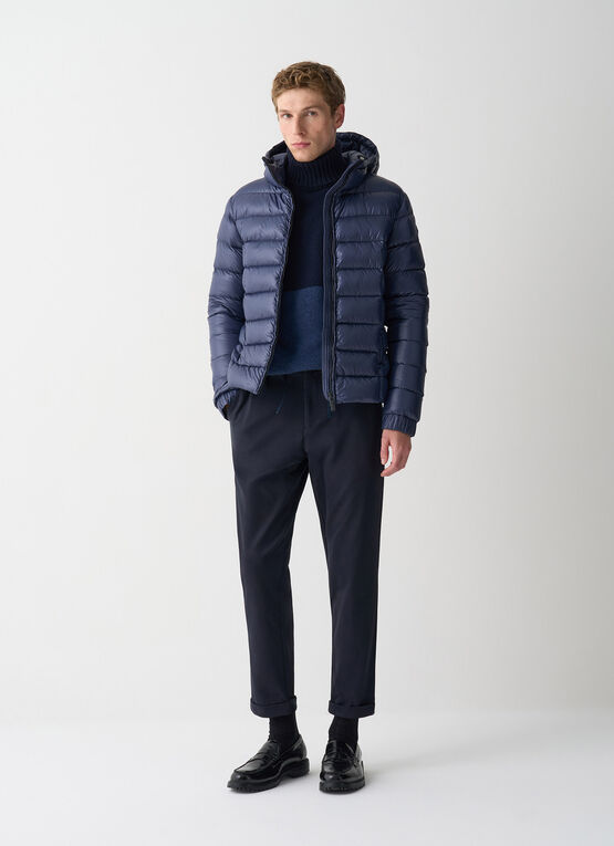 Il finish lucido del piumino con cappuccio da uomo aggiunge un tocco elegante e unico, ideale per chi cerca originalità e stile durante l'inverno.