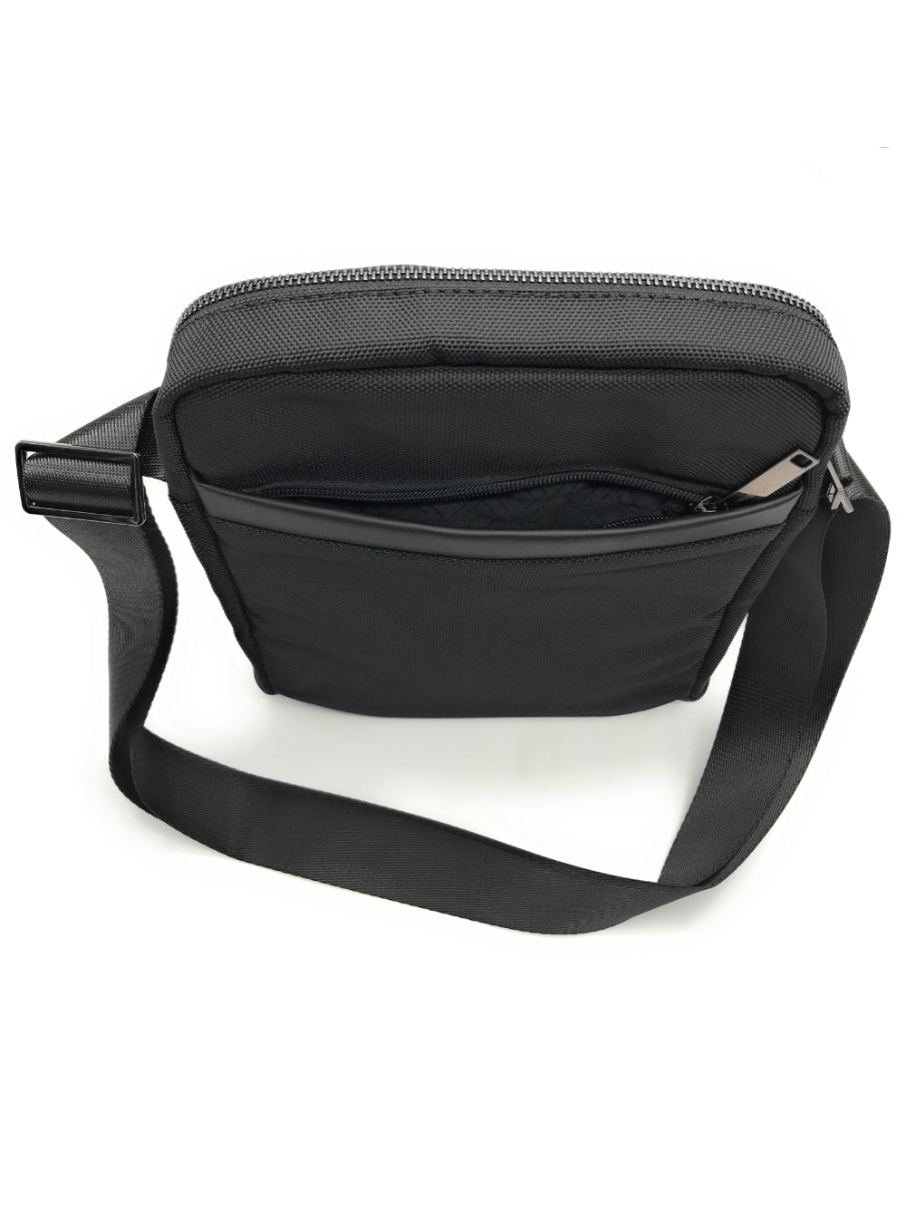 Borsello in tessuto tecnico con organizer interno e tasca porta tablet, portachiavi removibile “Remove before flight”, tasca esterna sul retro.